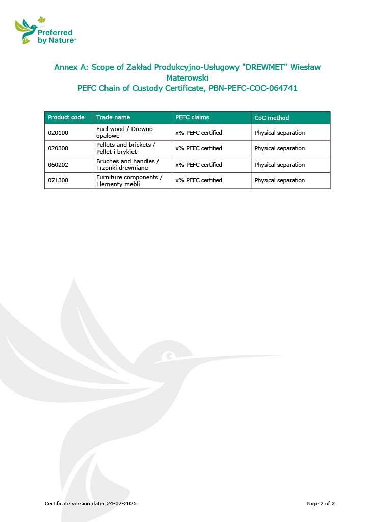 potwierdzają dbałość o środowisko i odpowiedzialne pozyskiwanie surowców. Zapewniają pewność, że nasze produkty pochodzą z legalnych i zrównoważonych źródeł.